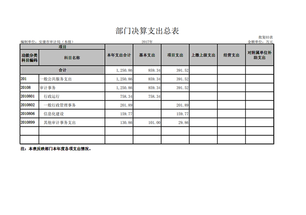 安康市審計(jì)局2017年部門(mén)決算公開(kāi)說(shuō)明