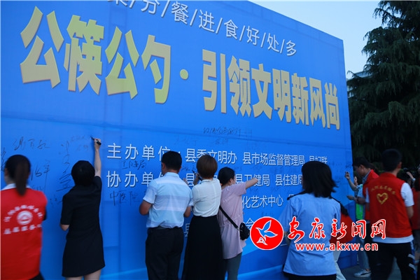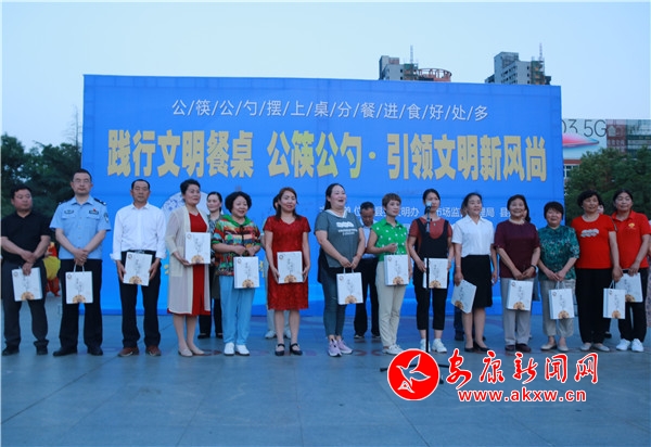 隨后,漢陰縣婦聯(lián)為“文明家庭”“最美家庭”“五好家庭”“美麗家園”示范戶代表贈送公筷公勺,各單位志愿服務(wù)隊還在簽名墻簽名承諾,踐行“公筷公勺”行動,引領(lǐng)餐飲新風。
