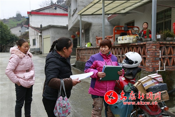 “雷康軍在家嗎?”趙明翠敲開曾溪鎮(zhèn)大溝村三組村民雷康軍的家門,屋子里火爐燒得很旺。“我爸上街了,趙阿姨趕快來坐,把手暖和一下!”雷康軍的女兒一邊招呼著,一邊倒茶水。“你爸有個(gè)包裹要簽收,還有你們家上邊的葛天均也有個(gè)包裹麻煩代收一下,我給葛天均打電話他說不在家,讓先放到你們家!”