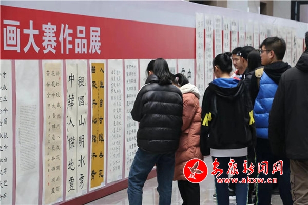 頒獎儀式上,與會領(lǐng)導(dǎo)嘉賓為獲獎個人及單位代表頒獎;教師、學(xué)生代表共同啟動安康市“我和我的祖國”2019年青少年書畫大賽獲獎作品巡展。在隨后舉行的青少年書畫大賽作品展中,美術(shù)家、書法家協(xié)會等專業(yè)人員對參賽作品進行觀摩指點;獲獎代表及中小學(xué)生書法繪畫愛好者在現(xiàn)場觀摩書畫大賽作品。