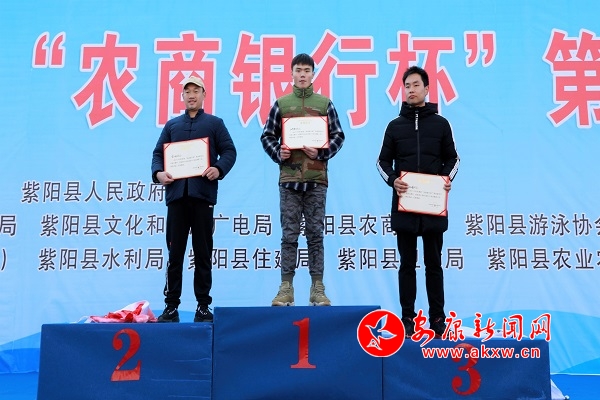 經(jīng)過兩個(gè)多小時(shí)的激烈角逐,來自安康繞八冬泳隊(duì)的汪學(xué)翔和汪星分別獲得了男子青年組和男子中年組第一名,西安雁塔區(qū)零度泳協(xié)的肖平獲得了男子老年組第一名,西安市泳協(xié)的劉巧琴獲得了女子組第一名。