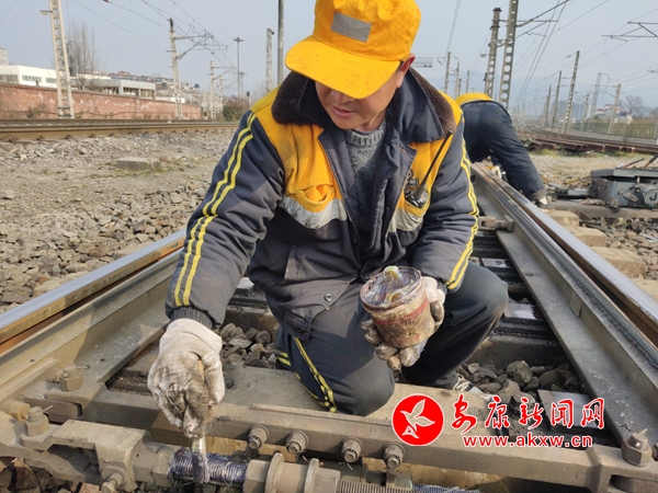 (圖為安康電務(wù)段職工檢修道岔作業(yè))