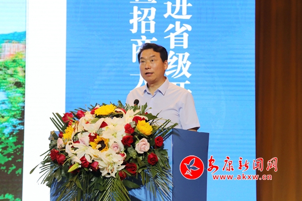本網(wǎng)訊 (記者 艾蓓)6月18日上午,安康市推進(jìn)省級(jí)開發(fā)區(qū)創(chuàng)建暨招商大會(huì)在石泉召開。市委副書記、市長(zhǎng)趙俊民,省商務(wù)廳副廳長(zhǎng)王宏偉,省發(fā)改委副主任劉凱出席會(huì)議并致辭。省工信廳二級(jí)巡視員李昭利、省科技廳二級(jí)巡視員楊世宏、省政府參事翟文俊,市委常委、石泉縣委書記李啟全,市人大常委會(huì)副主任陳倫寶、市政協(xié)副主席孟平出席會(huì)議。安康市開放發(fā)展高級(jí)顧問王振海、劉建華、楊堯成應(yīng)邀參加會(huì)議。副市長(zhǎng)楊淼主持會(huì)議。