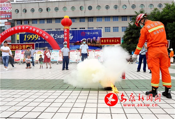 “燃氣管路或燃氣灶著火時,只要關閉其上部的閥門,燃氣火焰就會熄滅。也可先用滅火器、濕抹布將火撲滅,再迅速關閉閥門。”活動現(xiàn)場,市消防支隊消防員現(xiàn)場開展撲滅火演練,向市民介紹消防器材的使用、火災逃生技能、火災報警常識。廣場上還設置了安全生產(chǎn)法律法規(guī)和警示教育宣傳展板,各安全生產(chǎn)生活相關單位和機構積極發(fā)放安全生產(chǎn)宣傳手冊,為市民提供安全生產(chǎn)政策法規(guī)及防火、減災、防災、應急救援、逃生自救等安全知識咨詢服務。