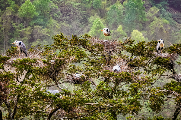 近年來,紫陽縣高橋鎮(zhèn)生態(tài)環(huán)境持續(xù)向好,吸引蒼鷺前來“安家”。 劉宗才 攝