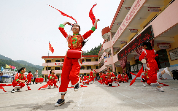 5月26日,陜西省安康市漢濱區(qū)茨溝小學(xué)校園鼓聲如雷,鈸音清脆,鑼鳴鏜鏜。該校高年班同學(xué)為慶祝六一兒童節(jié)開始練習(xí)威風(fēng)鑼鼓。據(jù)了解,茨溝小學(xué)的飛天腰鼓社團(tuán)共有……