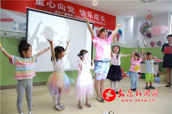 6月1日,活動以齊唱《紅星歌》拉開帷幕,通過舞蹈、武術(shù)表演、小品、親子游戲等項目,展示孩子們的朝氣與活力,同時以兒童視角,慶祝中國共產(chǎn)黨建黨100周年。