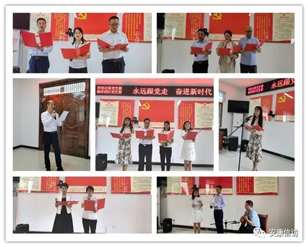 活動現(xiàn)場,大家面對鮮紅的黨旗,重溫入黨誓詞,再次以錚錚誓言激勵自己,不忘初心、牢記使命,對黨忠誠、為民務(wù)實,永遠跟黨走。大家先后朗誦詩歌《沁園春 雪》《同一首歌》《我是中國人》《黨的贊歌》《我們永遠跟黨走》,分享了黨史小故事《藏在衣柜里的父子情》,帶來了《祖國我永遠熱愛您》《唱支山歌給黨聽》《小白楊》,吉他彈唱《故鄉(xiāng)梨花又開放》等膾炙人口的歌曲。同時還穿插了黨史知識有獎問答和“你比我猜”兩個互動環(huán)節(jié),推動機關(guān)黨員干部與基層黨員干部的互動,增進了黨史學習。通過傳唱紅色經(jīng)典,銘記黨恩,堅定信仰,錘煉黨性。