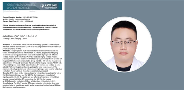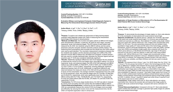面對失敗,科研小組沒有灰心,而是在失敗中不斷總結經(jīng)驗,提前投入到2021年的RSNA投稿工作,這一次準備時間更充分,科研討論會頻次更高。在耐心的等待中他們終于迎來了喜訊,賴建東醫(yī)生中稿2篇口頭發(fā)言,姚俊技師長中稿一篇電子壁報,科室在以RSNA投稿為抓手的科研工作中,終于又邁出了堅實的一步。