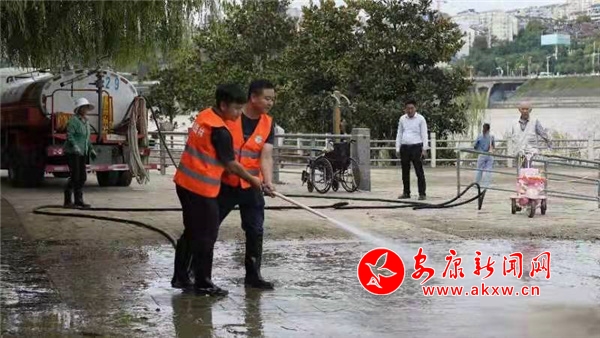 此次清淤行動共有80余名黨員及工人參與,出動水車2臺,不僅彰顯了黨員先鋒本色,充分發(fā)揮了模范帶頭作用,還帶動了全體職工參與抗洪清淤的積極性。經(jīng)過4小時的艱苦奮戰(zhàn),漢江公園二級主步道基本清通,還給廣大市民、游客一個干凈整潔的游園環(huán)境。