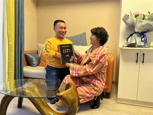 立冬這天,富華裝飾公司的周靜云、張培等人把王庭德迎進(jìn)溫暖的新居,向他移交了裝飾溫馨的新房。王庭德為了感恩,向富華裝飾公司贈(zèng)送了“關(guān)愛有致,親如家人“的匾牌。
