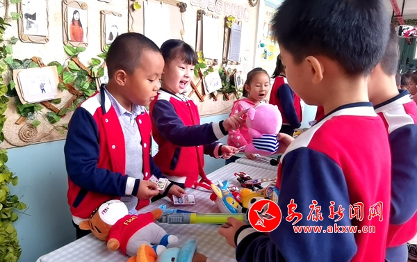 本網(wǎng)訊(通訊員 劉凡 王媛媛)為了幫助幼兒樹立環(huán)保理念,養(yǎng)成勤儉節(jié)約習(xí)慣,同時(shí)增強(qiáng)幼兒社會(huì)交往能力,提高幼兒語(yǔ)言表達(dá)能力,以及關(guān)愛他人的情感。4月28日,安康市幼兒園大班組結(jié)合主題教學(xué)活動(dòng)舉辦了“小跳蚤 大愛心”跳蚤市場(chǎng)活動(dòng)。