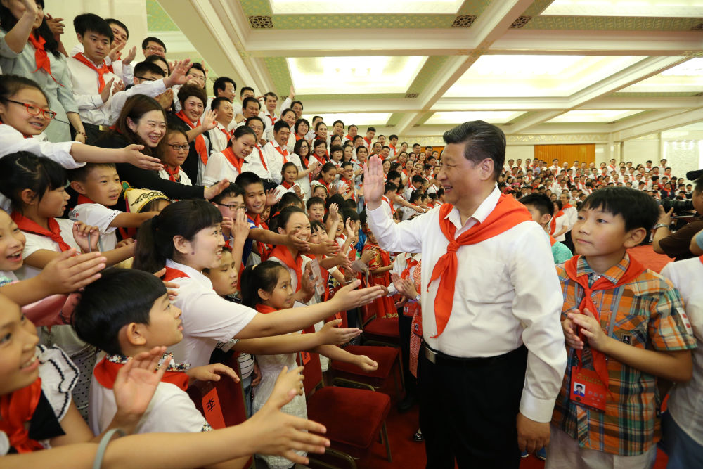 ↑2015年6月1日,習(xí)近平在北京人民大會(huì)堂親切會(huì)見中國(guó)少年先鋒隊(duì)第七次全國(guó)代表大會(huì)全體代表。