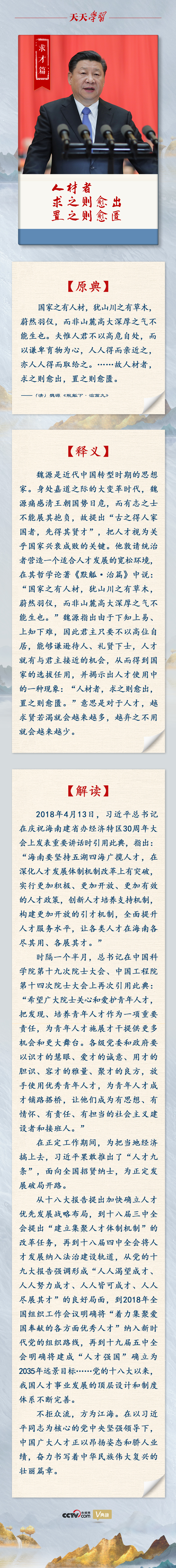 編者按:中央人才工作會議9月27日至28日在北京召開,習近平總書記出席會議并發(fā)表重要講話。黨的十八大以來,總書記站在黨和國家事業(yè)發(fā)展全局的戰(zhàn)略高度,對我國人才事業(yè)發(fā)展作出一系列重要指示。在講話和文章中,他大量引用有關中國古代人才思想的典故,就如何選才、敬才、求才、育才、用才等話題,提出了一系列新思想、新觀點、新論斷、新要求,為新時代做好人才工作提供了根本遵循和行動指南!短焯鞂W習》帶您一起學習回顧。 rPv安康新聞網