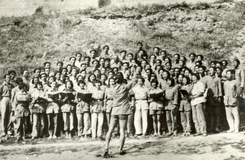 這是1939年魯藝學員排練《黃河大合唱》的資料照片。新華社發(fā)(延安文藝紀念館供圖)