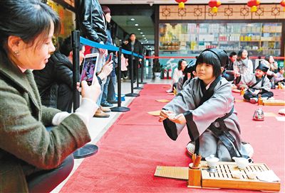 孩子們在父母的帶領(lǐng)下體驗中國傳統(tǒng)文化。 (資料圖片 首席記者 李明 攝)