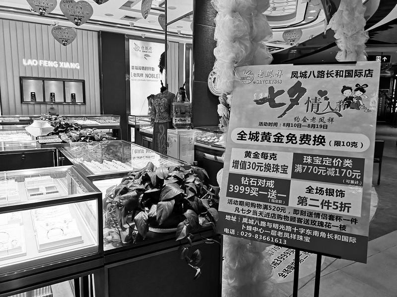 8月11日中午正逢周末,記者來到人氣極高的小寨賽格,在珠寶黃金專柜,發(fā)現(xiàn)很多珠寶品牌都趁機(jī)推出七夕活動(dòng),不少消費(fèi)者正在詢價(jià)。今年27歲的趙女士說,她和男友剛剛訂婚,準(zhǔn)備看看首飾,為婚禮準(zhǔn)備,這段時(shí)間恰好遇到七夕節(jié)活動(dòng),如果優(yōu)惠合適的話,她們就打算購買了。