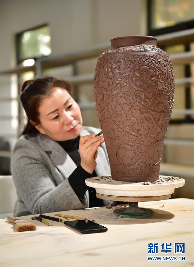 10月21日,在耀瓷小鎮(zhèn)創(chuàng)意園區(qū)大師坊內(nèi),一名工作人員在進(jìn)行創(chuàng)作。 新華社記者 邵瑞 攝