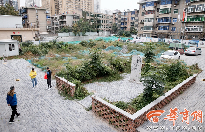 10月19日下午,記者隨馮沖及其父親、叔叔來到陜西省交通醫(yī)院院內(nèi)。院子當(dāng)中是塊空地,中間有一塊園林,古墓位于園林中間。緊挨著古墓的一側(cè),是一個大坑,“這是醫(yī)院蓋樓打的地基坑。”馮沖說。
