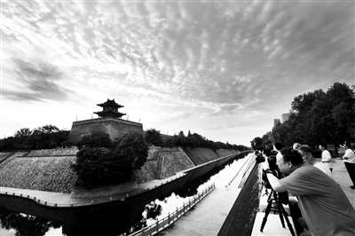 市民在東南城角拍攝夕陽 記者 馬昭 攝