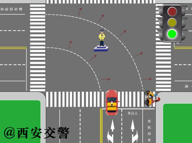道路情況一:轉(zhuǎn)彎的非機(jī)動(dòng)車通過(guò)有交通信號(hào)燈路口