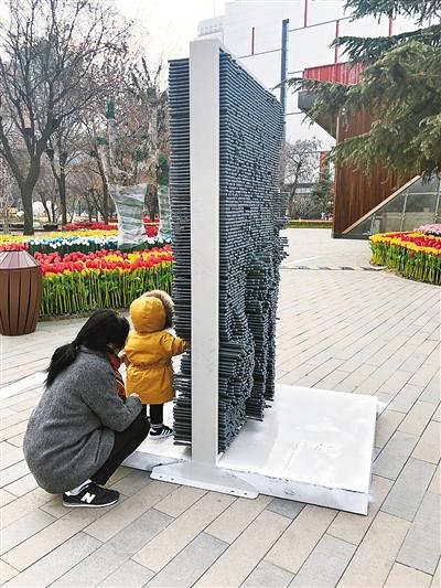 根據(jù)伍先生反映的情況,24日上午,記者來到位于高新區(qū)的創(chuàng)業(yè)咖啡街區(qū),在街區(qū)北側(cè)廣場上,記者看到伍先生提到的4座三維人體百變針雕。整個針雕是一個類似大相框的鐵架子,中間放置了上千根塑料材質(zhì)的針管。人只要向這些針管靠進去,對面就會印出一個立體的人形,非常有趣。然而記者注意到,雖然每個大鐵框下方預留有螺絲孔,但卻沒有進行固定。現(xiàn)場,不時有孩子和市民好奇地在上面玩耍。