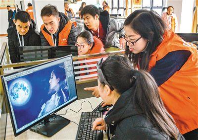 殘疾人學(xué)員在西安市殘疾人創(chuàng)業(yè)孵化基地學(xué)習(xí)平面設(shè)計技術(shù) 記者 王健 攝