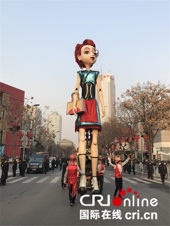 西安高新區(qū)跨年活動(dòng)中花車巡游現(xiàn)場(chǎng)的巨人木偶蘿拉(攝影 陳嵐)