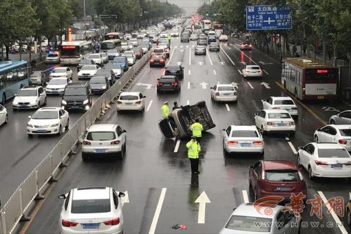 9月19日上午7時(shí)許,西安市太白南路,一輛私家車側(cè)翻在由南向北的快車道上。此時(shí)正是早高峰,4名交警在現(xiàn)場(chǎng)進(jìn)行交通疏導(dǎo)。由于路面濕滑,加上駕駛?cè)瞬僮鞑划?dāng),造……