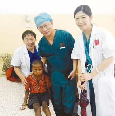 楊鐵軍這次到達幾內(nèi)亞后實施手術(shù)的第一例患者是一名6歲兒童。這位兒童遭遇了車禍,傷勢嚴重,右上肢和下肢都有骨折、右股骨粉碎性骨折。小患者已經(jīng)住了很久醫(yī)院,但是當(dāng)?shù)卮蠓虿恢廊绾谓o這個孩子治療,只能暫時用石膏固定病肢。在楊大夫給小患者成功手術(shù)后僅兩周,小患者右上肢石膏已拆除,活動自如。孩子父母對中國醫(yī)療隊的感激溢于言表,孩子天真稚氣的小臉上又重現(xiàn)了往日的歡樂笑容。