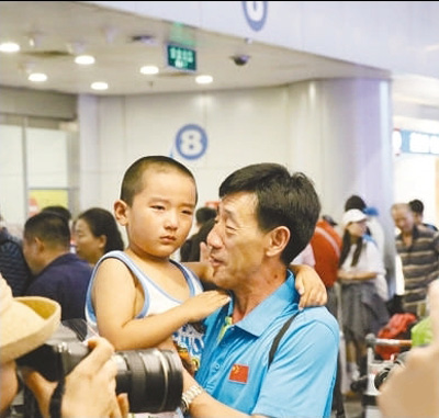 | 臨出國前,醫(yī)療隊隊員家屬與隊員們依依不舍。 |