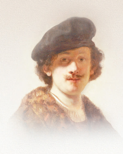 創(chuàng)作于新婚之年的《眼部蒙上陰影的自畫像》,流露出畫家春風(fēng)得意的情態(tài)。柔綿的光影下,頭戴貝雷帽的倫勃朗目視前方,時髦而貴氣的打扮,那似乎掩蓋心緒卻又遮擋不住貝雷帽的陰影,清瘦溫潤的面龐,上揚的胡須,篤定而自信的眼神等,這些被畫家作“設(shè)定”或“寫真”式處理的細(xì)節(jié),是其內(nèi)心愉悅的寫照。這幅作品借助光影、技法來傳遞人物內(nèi)心的特點,已詮釋出倫勃朗在藝術(shù)上的日臻成熟。對他幫助甚大的妻子,此后也多次出現(xiàn)在其畫作中,或是公主,或是花神,或是與倫勃朗以幸福伉儷的身姿出現(xiàn)。倫勃朗似乎在用最擅長的畫筆,感念妻子帶給他的黃金歲月。