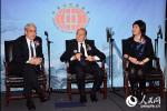 莫里斯·格林伯格先生(中)與中國駐紐約總領(lǐng)事章啟月大使(右)和耶魯大學(xué)校長彼得·沙洛維(左)就中美關(guān)系進(jìn)行對話。(圖片由主辦方提供) ……