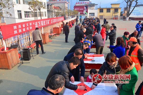 安康新聞網(wǎng)訊(通訊員 吳磊 郎海俠)1月23日,由陜西省文聯(lián)、陜西省書協(xié)組織的“送萬福進(jìn)萬家”義寫春聯(lián)公益活動(dòng)在縣體育場(chǎng)舉行,省書協(xié)副主席史星文、吳福春、劉偉群等數(shù)十位省、市書法家參加義寫活動(dòng)?h委常委、宣傳部長(zhǎng)魯延福出席活動(dòng)并致辭。