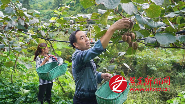 在觀音河鎮(zhèn)中坪村種植大戶王詩(shī)金的獼猴桃園里,連綿的藤架上果實(shí)累累,黃褐色的獼猴桃成串懸掛,王詩(shī)金和家人一起穿梭于藤蔓之間,熟練地采摘、搬運(yùn),臉上寫滿了喜悅。