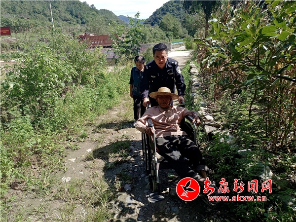 9月4日,寧陜江口派出所民警在轄區(qū)冷水溝村雨后災情道路巡查途中,在路邊發(fā)現(xiàn)一名坐著輪椅的老人,語言不清。民警通過向過往群眾詢問,確認身份后,在群眾的幫助下,將老人安全送回了家中。(通訊員 龔莎)pdz安康新聞網(wǎng)