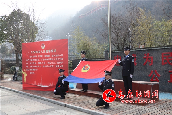 開展《公安機關人民警察誓詞》集中宣誓活動。組織30余名民警,面向中國人民警察警旗莊嚴宣誓。“我是中國人民警察,我宣誓:堅決擁護中國共產黨的絕對領導……”鏗鏘有力的誓言響徹全場,莊嚴的誓詞,增強了全警在警旗引領下忠誠履職盡責的使命感和責任感。宣誓活動結束后,全體參加活動的民警,面對警旗,敬禮致敬。