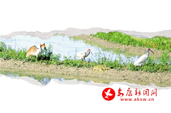 現(xiàn)在,在寧陜縣城關(guān)鎮(zhèn)寨溝村,經(jīng)常能看到朱鹮時而在田埂上棲息,時而在稻田里捉泥鰍,時而翱翔在青山綠水之間,已然成為當(dāng)?shù)匾坏漓n麗的風(fēng)景線。