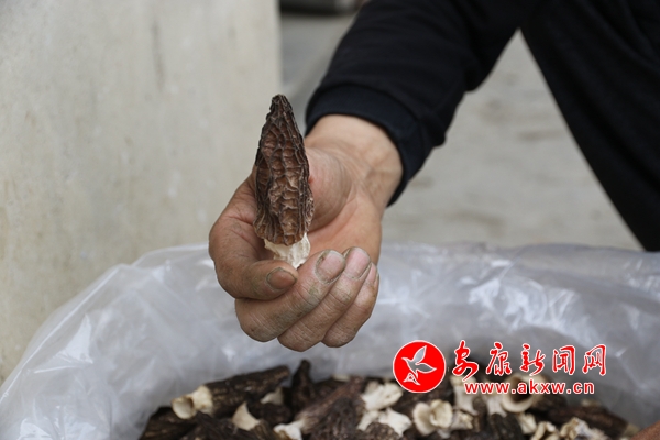 把近70斤干羊肚菌扎袋裝車,開著三輪車載著妻子的胡章志滿臉笑容,馬上就要把這些農(nóng)產(chǎn)品送給訂購商了,他長長舒了一口氣說:“早上接到的電話,讓我送貨,500塊一斤,這一車能賣三萬多,心里特別高興!”