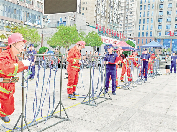 著裝完畢,隊(duì)員迅速移步至繩架前。卷結(jié)、雙股單結(jié)、雙股8字結(jié)、蝴蝶結(jié)、單椅子扣,5個(gè)基礎(chǔ)繩結(jié)在指尖翻飛中快速成型。在救援現(xiàn)場(chǎng),一根繩索、一個(gè)繩結(jié),往往是連接生命的紐帶,是救援人員自身防護(hù)的“生命線”,也是保障被困人員轉(zhuǎn)移安全的核心前提。
