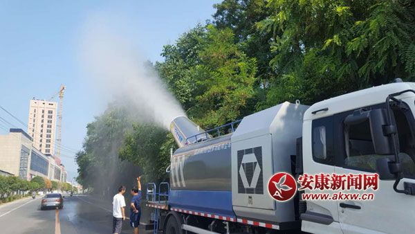 安康新聞網(wǎng)訊(通訊員 譚淵)8月3日上午,在石泉炎熱干燥的環(huán)城路上,一輛尾部裝有巨大“炮筒”的卡車(chē)沿路噴水灑霧,一路走過(guò)路面潮濕,空氣清涼,沿途飄灑的水……