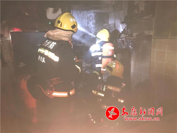 經(jīng)偵查發(fā)現(xiàn),起火部位為小吃店廚房操作間燃氣灶,火勢呈上升趨勢,著火面積約20平方米左右。指揮員斷電后,使用水槍緊急滅火,火勢得以控制。