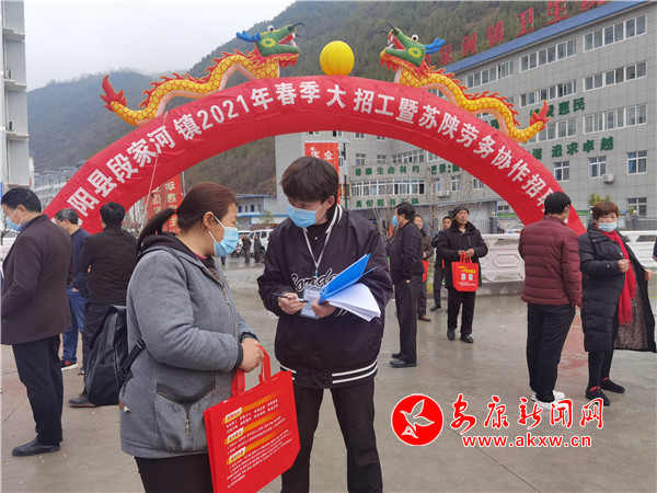 本網(wǎng)訊(通訊員 黃蓉)3月1日上午,在段家河鎮(zhèn)金水灣移民搬遷小區(qū)廣場上,舉辦了2021年春季大招工暨蘇陜勞務協(xié)作招聘會,吸引了全鎮(zhèn)11個村(社區(qū))近500余名群眾前來咨詢。