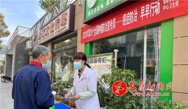 本網(wǎng)訊(通訊員 陳子賢)2022年4月15日至21日是第28個(gè)全國腫瘤防治宣傳周。為進(jìn)一步提高全社會(huì)癌癥防控意識(shí),促進(jìn)廣大居民了解癌癥預(yù)防知識(shí),主動(dòng)干預(yù)癌癥高危因素,營造全民防癌抗癌的良好氛圍。4月20日早上,旬陽市城關(guān)中心衛(wèi)生院走進(jìn)下菜灣社區(qū),聯(lián)合社區(qū)衛(wèi)生室開展 “癌癥防治 早早行動(dòng)”為主題的全國腫瘤防治宣傳周活動(dòng)。