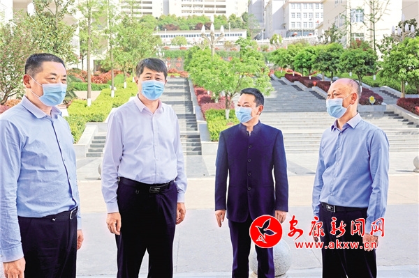 安康市委副書記、政法委書記范永斌(左二),旬陽市委書記陳紅星(左一)到旬陽市職教中心檢查指導(dǎo)工作。