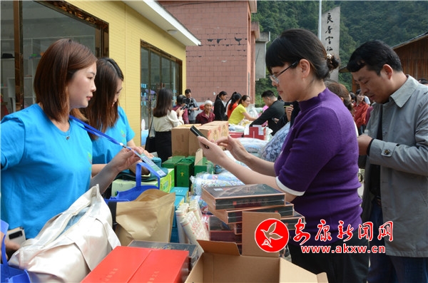 本網(wǎng)訊(通訊員 姚秋晨 黃志順) “給我稱10斤核桃,5斤干洋芋果果。”“土雞來(lái)兩只。”“買2個(gè)艾草枕頭。你這艾草足浴包咋賣的呢?”“雙節(jié)”前夕,紫陽(yáng)縣毛壩鎮(zhèn)觀音村的集市熱鬧非凡。從來(lái)都是觀音村的群眾逢三六九到鎮(zhèn)上趕集,如今鎮(zhèn)上、縣上、市上的人都到村里買東西來(lái)了。