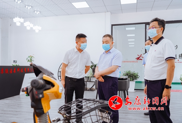 市長武文罡(左二)在蘇陜杰森環(huán)?萍脊菊{(diào)研