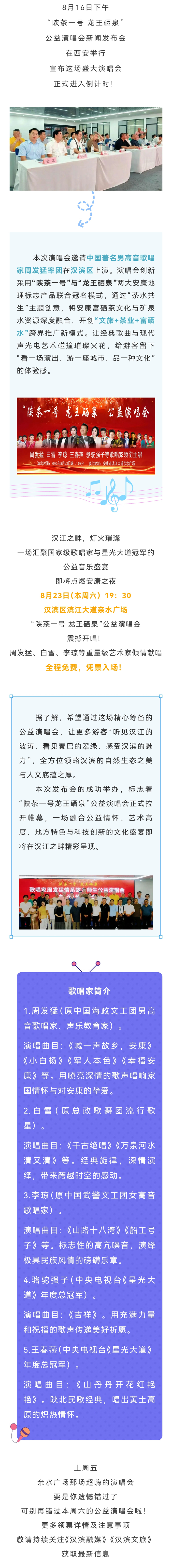 “陜茶一號 龍王硒泉”公益演唱會!本周六,江北親水廣場激情開唱!