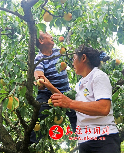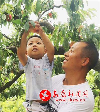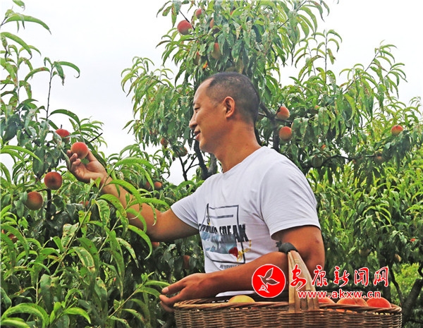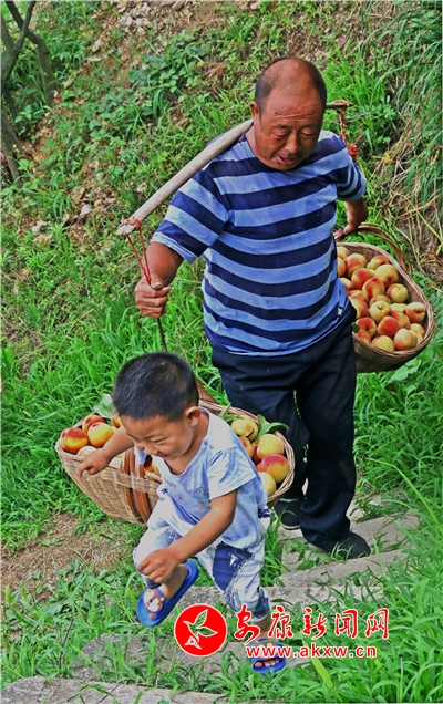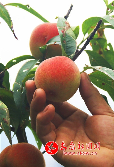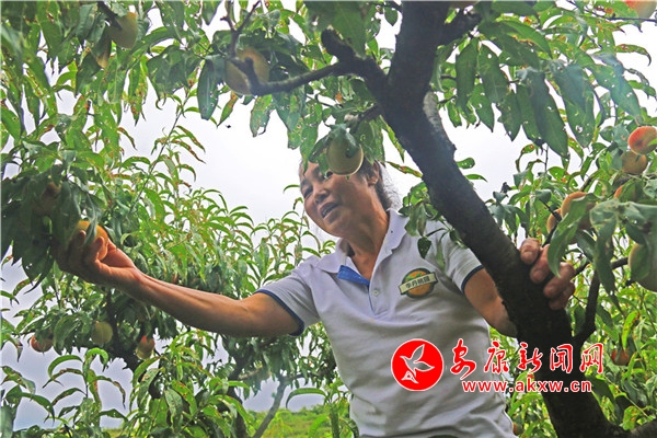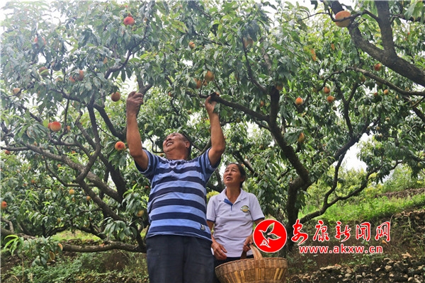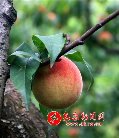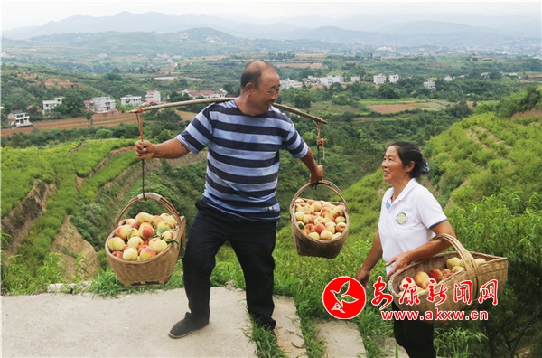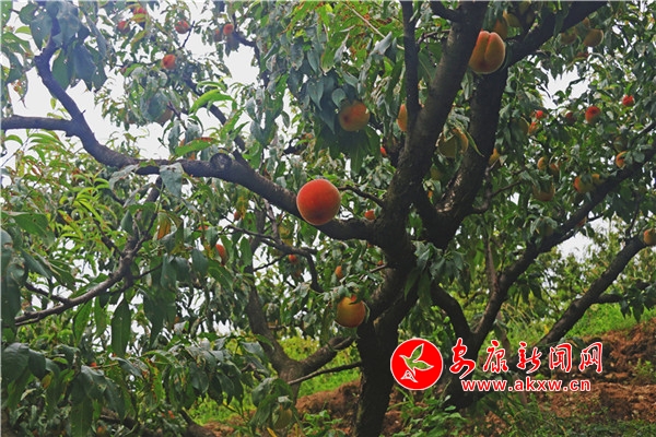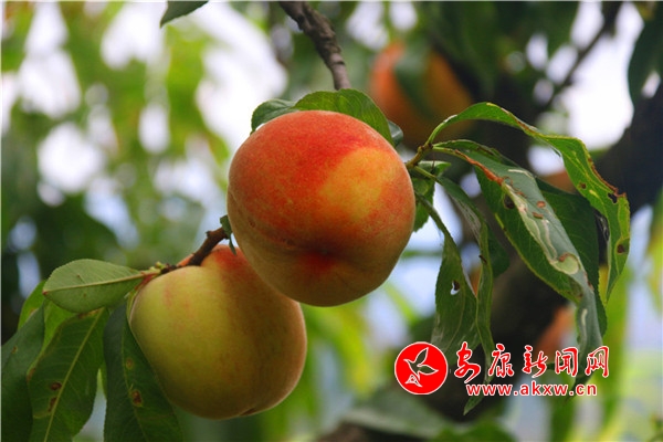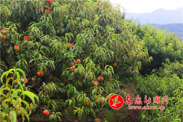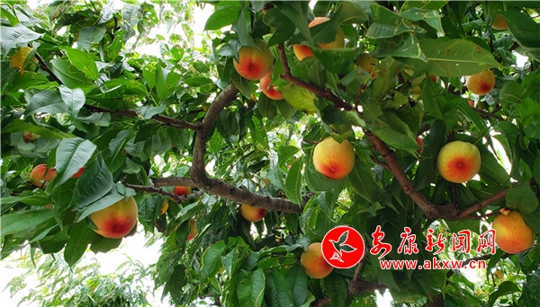滿山架嶺的桃子,碩大圓潤,白中透粉,粉嫩透紅,密密匝匝掛滿枝頭,把樹枝都壓彎了腰。在繁茂綠葉的包裹下,更顯其誘人。5iq安康新聞網(wǎng)