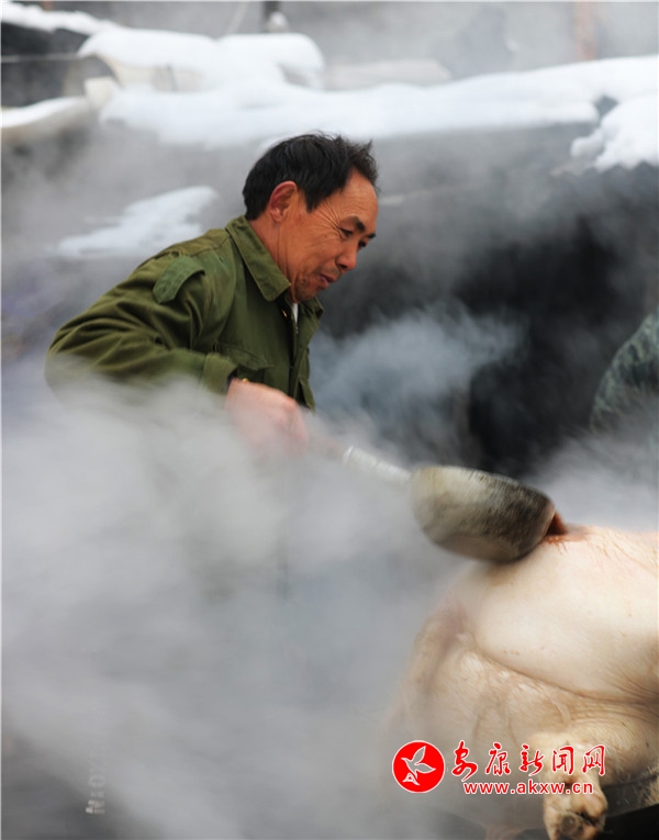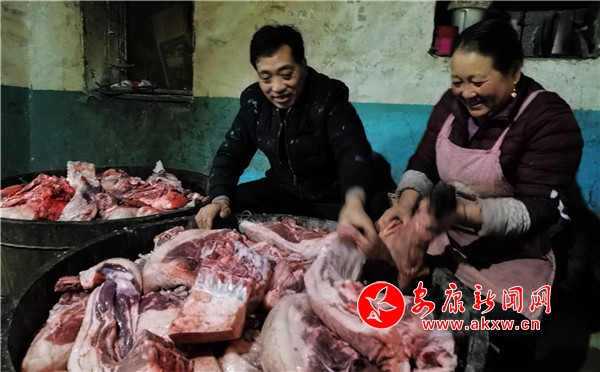 當天,張成凱家一口氣殺了6頭豬,約1200斤,收入3萬多元;張秀柱家殺了2頭豬,400余斤,收入約1萬元。